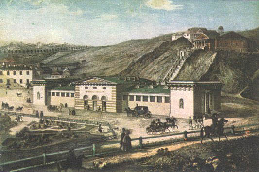 В самом центре города стоит здание, украшенное портиком с шестью колоннами. В то время это было лучшее строение Пятигорска. Называлось оно гостиницей Найтаки (по имени ее содержателя), или ресторацией. Приезжавшие на воды могли нанять здесь на несколько дней комнату и заказать обеденный стол. По вечерам в небольшом зале устраивались балы и различного рода развлечения. На публичных сборах в гостинице Найтаки особенно ярко проявлялись обычаи и нравы обитателей курорта. Вот почему Лермонтов решил свести героев повести "Княжна Мери" на балу в зале ресторации.