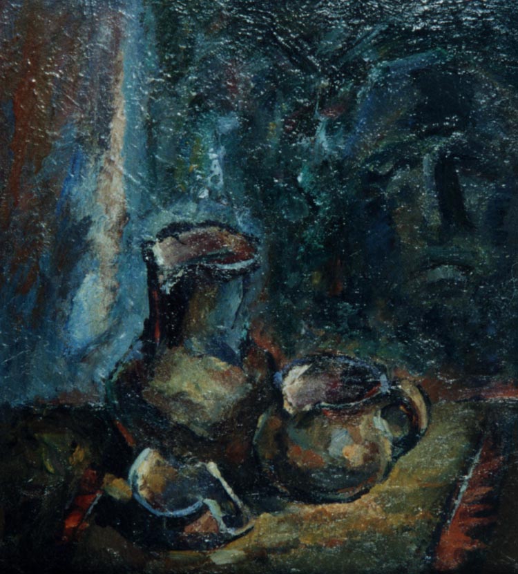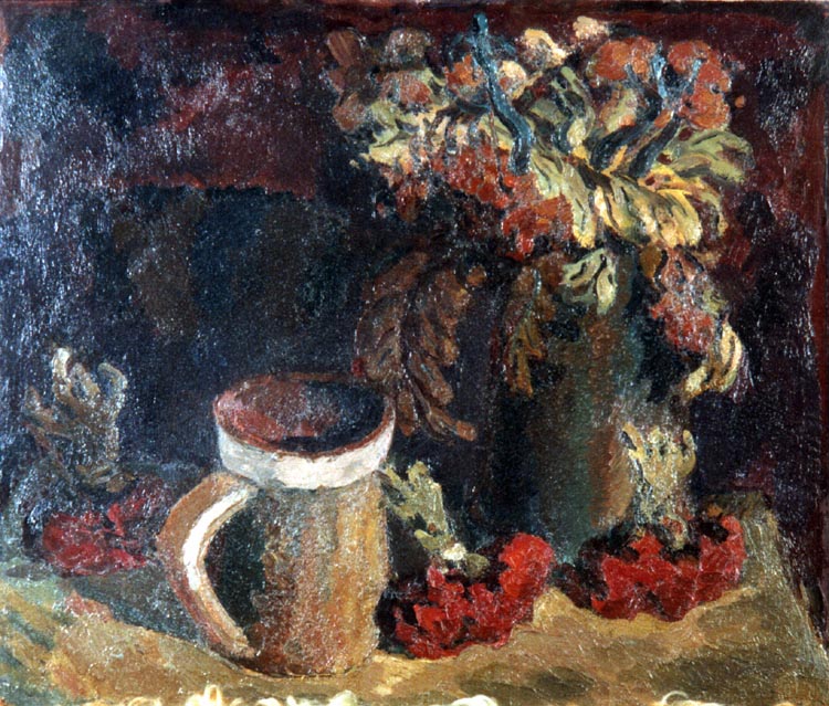 Вот весенняя ветка в глиняном кувшине с первыми распустившимися цветами. Здесь нет буйства красок. Все скромно и даже немного буднично. Но угадывается целая жизнь рабочей глубинки, где нет ни клумб ни цветочных магазинов. Яблоневая веточка с нежными красновато-розовыми лепестками символизирует стремление людей к прекрасному.