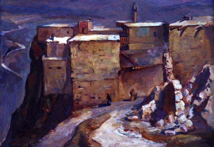А рюкзак стал так же привычен, как мольберт, кисть и краски. Он исходил пустыни Средней Азии, путешествовал по сибирской тайге и тундре, Беломорью, ночевал в хижинах тордохах - хижинах якутов. Кавказ же он исходил, как говорится, вдоль и поперек. Сванетия, Имеретия, Хевсуре-тия, Дагестан, Армения, Азербайджан...