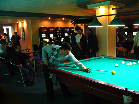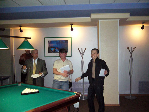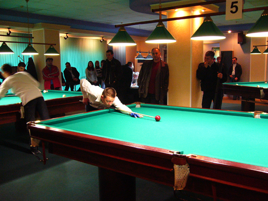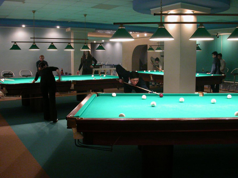 В первую очередь, конечно, любители русского бильярда - традиционно русской игры. Для них установлено 8 столов марки Porter. Все 12-ти футовые столы. Пуловский стол, тоже ждет своих игроков. Размер стола 9 футов.