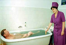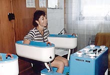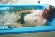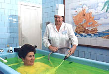 Водолечебная процедура, сочетающая действие на организм общей ванны и струи воды, направляемой под водой на массируемый участок. При проведении процедуры в минеральной воде лечебное действие дополняется химическим фактором. В основе механизма действия подводного душа - массажа лежит температурное и механическое раздражение. При одновременном воздействии теплой ванны и массажной струи у пациента наступает выраженное покраснение кожи, связанное со значительным перераспределением крови, улучшением крово- и лимфообращения, питания тканей, усиливается обмен веществ, быстрее рассасываются воспалительные очаги.