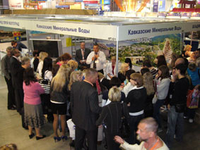 Оргкомитет выставки во главе Руководителя Федерального Агентства по туризму А.И.Ярочкиным и зам.министра спорта, туризма и молодежной политики РФ Рожнов О.А. тепло и радушно был принят на стенде Кавказских Минеральных Вод со Ставропольским хлебом, минеральными водами Кавминвод, целебной лечебной грязью Тамбуканского озера и экологически чистым воздухом городов-курортов.