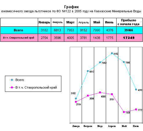 Курорты федерального значения Кавказские Минеральные Воды за шесть месяцев 2005 года приняли на отдых и лечение 265 тысяч 298 человек, в том числе: За шесть месяцев 2005 года санаторно-курортный комплекс принял на 23328 человек больше, чем за соответствующий период прошлого года, а с учетом туристского и частного сектора на 37737 человек больше, чем за шесть месяцев 2004 года. 1. Санаторно-курортное лечение льготной категории граждан в 2005 году Во исполнение федерального закона Российской Федерации от 23 августа 2004 года № 122-ФЗ в части обеспечения граждан - получателей социальных услуг санаторно-курортным лечением, а также их бесплатного проезда к месту лечения и обратно, региональные отделения Фонда социального страхования Российской Федерации по состоянию на 1 июля 2005 года выдали 540000 путевок, или более 40 процентов всего количества путевок, выделяемых в 2005 году. Более пятидесяти санаториев Кавказских Минеральных Вод по состоянию на 01.07.2005 года приняли на отдых и лечение 39486 человек или более 75 процентов от общего количества, предусмотренного договорами на 2005 год. Из 39486 человек принятых на курортах КМВ 17349 человек составляют жители Ставропольского края. 2. Особо экономические зоны Российской Федерации 8 июля 2005 года Госдума приняла во втором и третьем чтении федеральный закон "Об особых экономических зонах в Российской Федерации". С основным докладом выступил председатель Комитета по экономической политике, предпринимательству и туризму Валерий Драганов. Закон определяет правовой режим двух типов особых экономических зон - промышленно-производственных и технико-внедренческих. Однако по предложению Комитета по экономической политике, предпринимательству и туризму, в постановление Госдумы о принятии законопроекта во втором чтении включен пункт о необходимости подготовки в период осенней сессии проекта федерального закона, определяющего правовой режим туристско-рекреационных особых экономических зон. Представители Правительства России согласны с такой постановкой вопроса. Таким образом, во второй половине 2005 года туристско-рекреационные зоны станут территориями особого экономического регулирования. По словам заместителя председателя Комитета по экономической политике, предпринимательству и туризму Юрия Барзыкина, этот законопроект имеет давнюю историю. В 2000 году законодательное собрание Краснодарского края совместно с Законодательным собранием Сочи и с участием Сочинского государственного университета курортного дела и туризма разработали проект закона о свободной экономической зоне на территории курорта Красная поляна. Однако тогда Правительство России было против такого рода "налоговых оффшоров". Прошло немало времени, прежде чем удалось убедить президентские и правительственные структуры, а также Госдуму в том, что на туристско-рекреационных территориях должны действовать особые механизмы экономического регулирования, как это практикуется в развитых в туристском отношении странах - Испании, Греции, Турции, получающих от туризма огромные доходы. Только в этом случае у наших курортов и туристских центров появятся стимулы для развития. Туризм - это такая отрасль, в развитие которой первый взнос должно сделать государство. Чтобы туристско-рекреационные зоны стали признанными как зоны особого экономического р