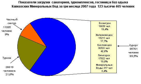 Курорты федерального значения Кавказские Минеральные Воды за три месяца 2007 года приняли на отдых и лечение 123465 человек, в том числе: