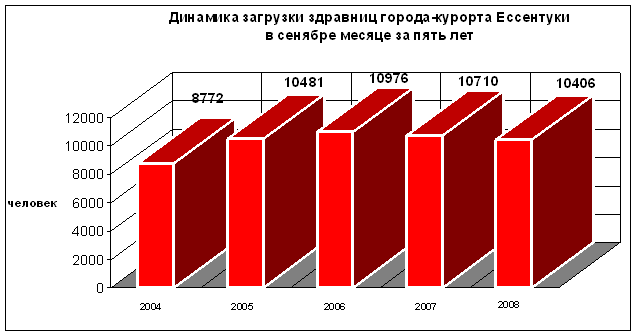 Здравницы города-курорта Ессентуки в сентябре 2008 года приняли на 570 человек меньше, чем в сентябре 2006 года, но на 1634 человека больше, чем в сентябре 2004 года.