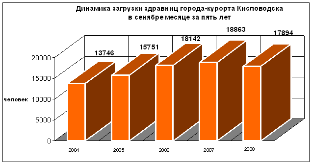 Здравницы города-курорта Кисловодска в сентябре 2008 года приняли на 248 человек меньше, чем в сентябре 2006 года, но на 4148 человек больше, чем в сентябре 2004 года.