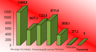 Предприятия промышленного розлива минеральных вод городов: Ессентуки, Железноводска, Пятигорска и Предгорного района значительно увеличили объемы производства, по отношению к достигнутым показателям в марте 2007 года. Ликвидация (процедура банкротства) предприятия в городе Лермонтове, снижение розлива по городу Минеральные Воды и Минераловодскому району не сказались на общих положительных результатах. В марте 2008 года превышение розлива минеральных вод составило 6 млн. 631 тыс. 200 литров против соответствующего периода 2007 года. Таблица 4.Показатели трех месяцев 2008 года по сравнению с соответствующим периодом 2007 года (в тыс.л)